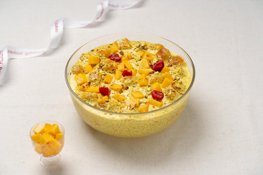 A creamy blend of chia seeds, mango purée, and rich condensed milk, layered with delicate...